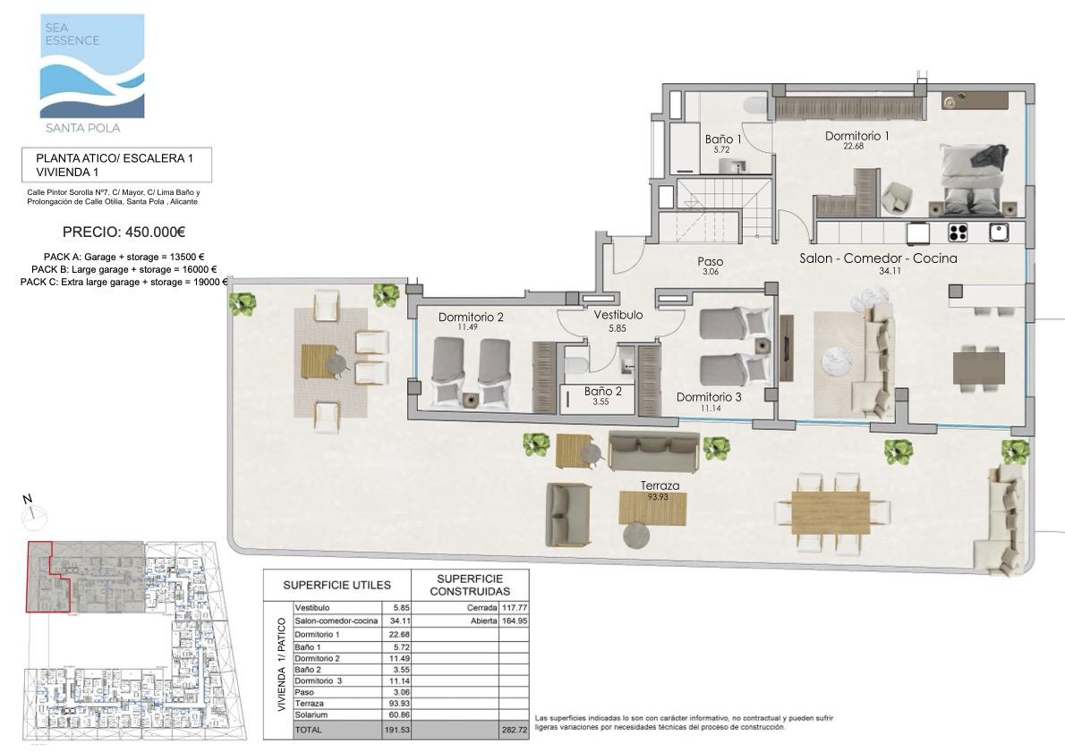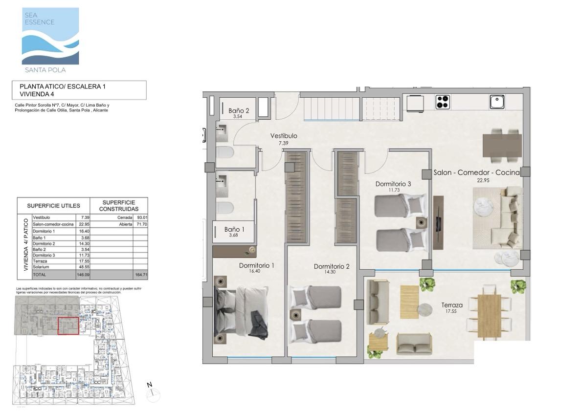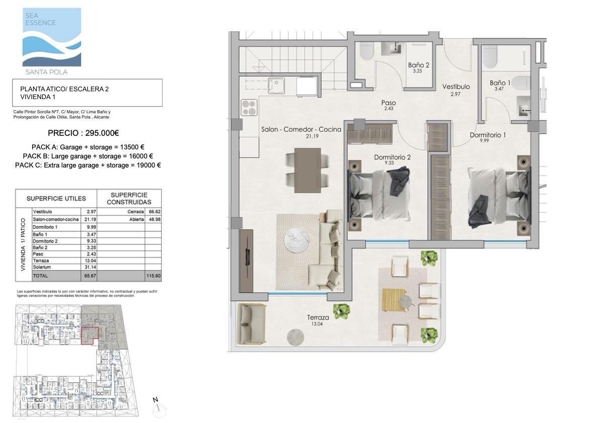 NOUVELLE CONSTRUCTION À SANTA POLA, Il s’agit d’une résidence privée, qui dispose d’une piscine, Espaces communs et salle de sport, offrant des penthouses de 2 Et 3 Chambres, le tout avec 2 Bains. Le complexe est composé de 4 Immeubles d’appartements.