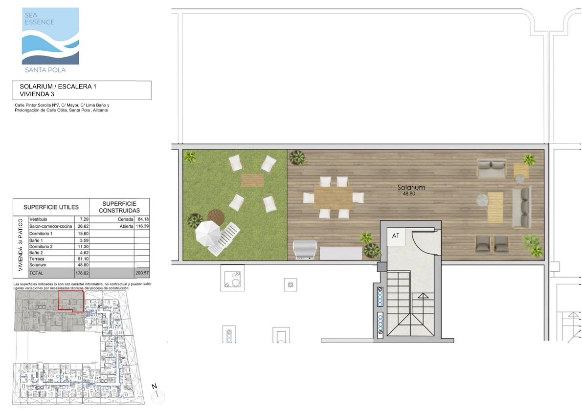 GRENIER 4 3D 2B 165,40 m² Terraza: 14,40 m² Solarium: 48,55 m² SW 398.000 Nous $