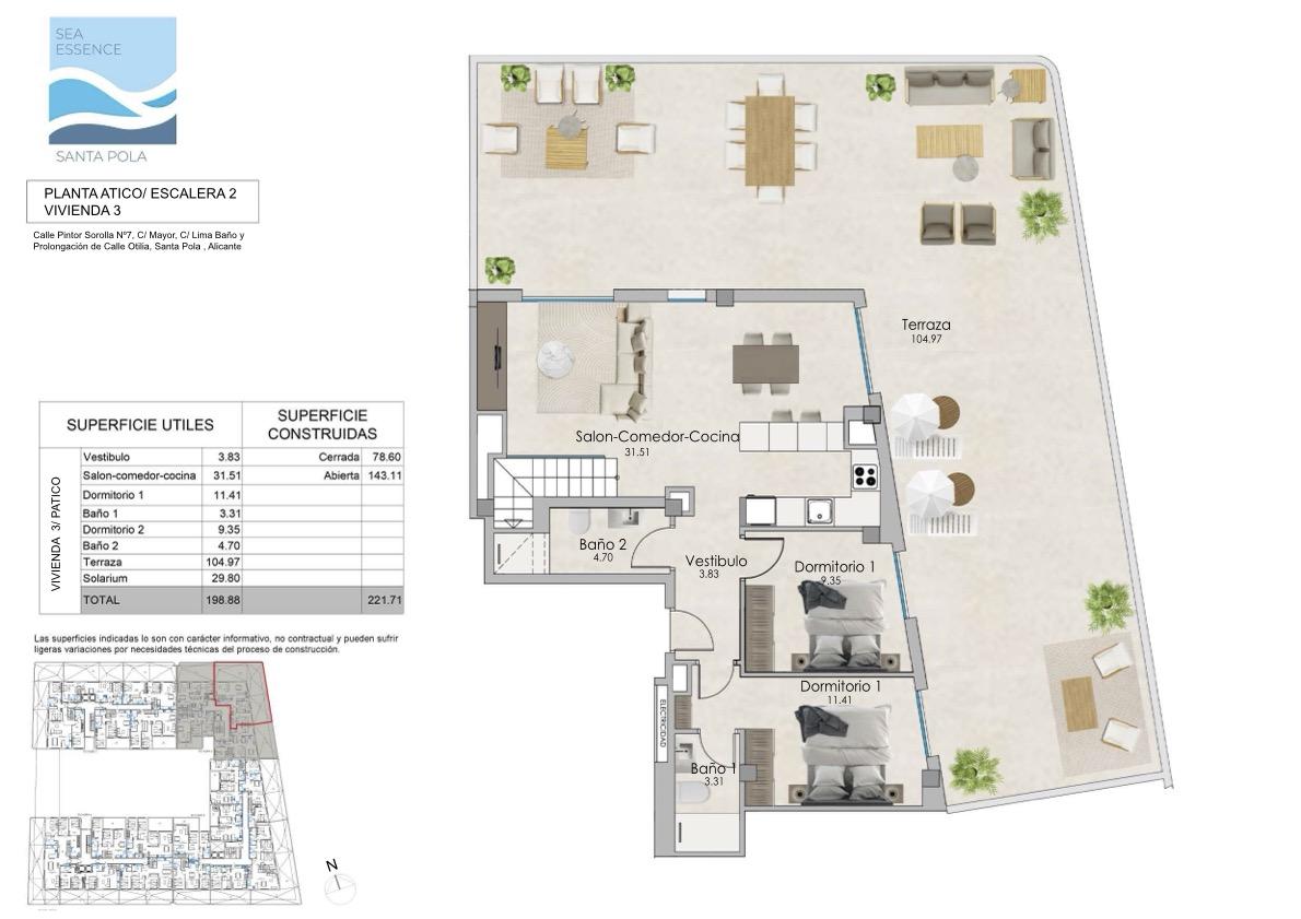 Chaque penthouse a été conçu dans les moindres détails pour vous offrir une expérience de vie inégalée, avec des matériaux et des finitions de haute qualité, avec un style contemporain, L’un des penthouses est ses grandes terrasses, Idéal pour se détendre, Organisez des dîners en plein air et contemplez des couchers de soleil spectaculaires et profitez du beau temps de la région
