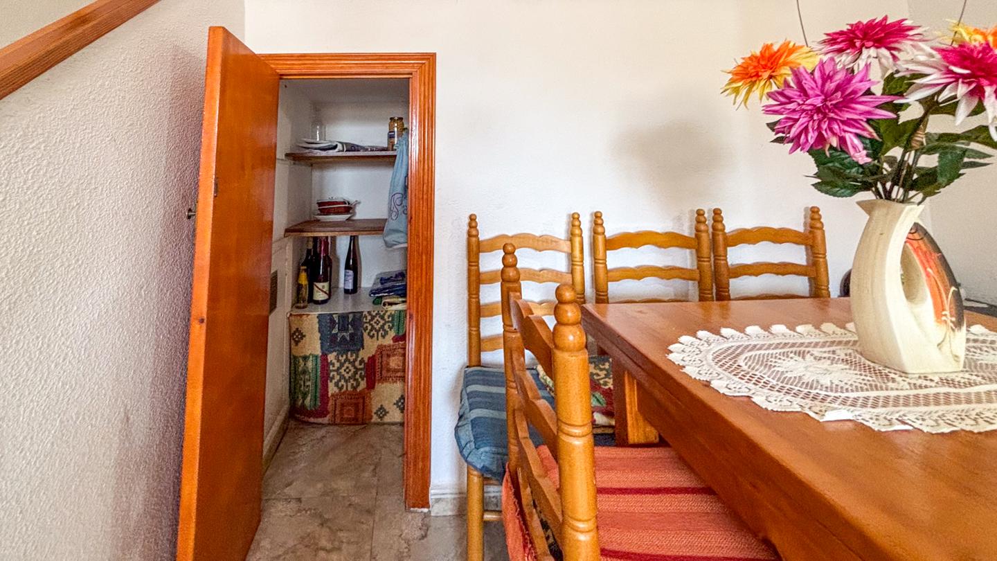 En la planta superior se ubican dos dormitorios dobles y un baño completo. El dormitorio principal cuenta con armario empotrado y acceso directo a un balcón privado. La vivienda ofrece además espacio de almacenaje extra para mayor comodidad.