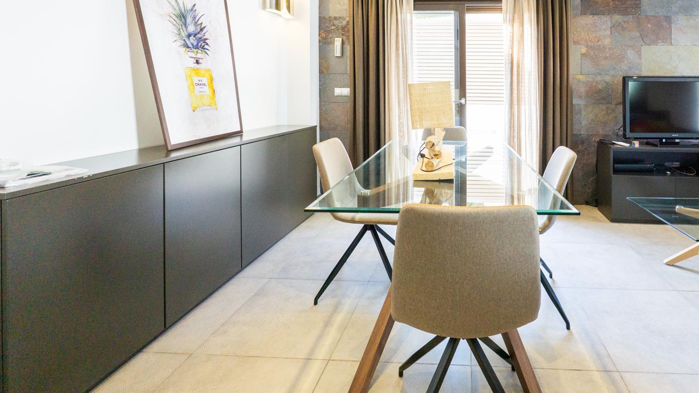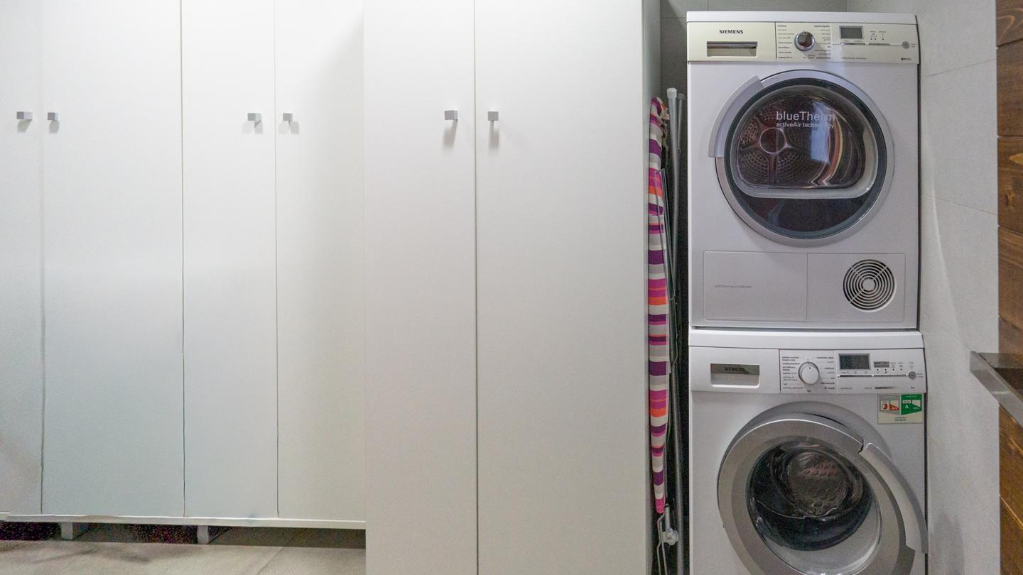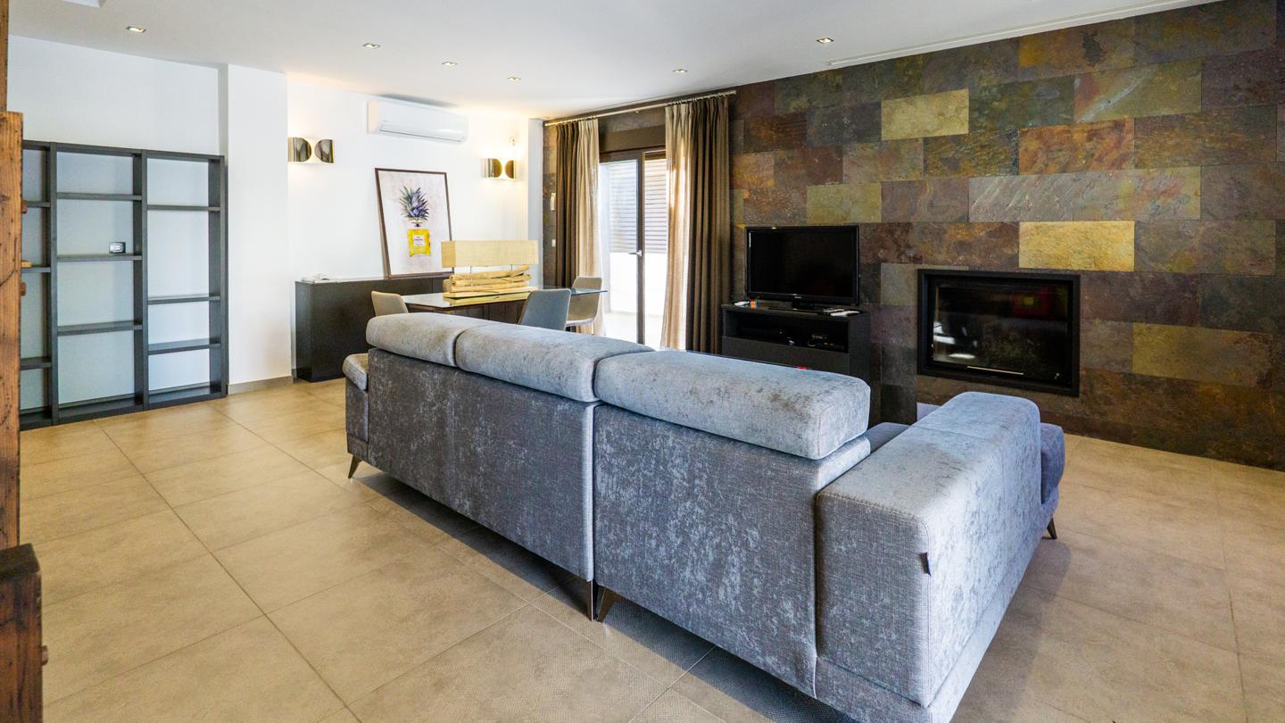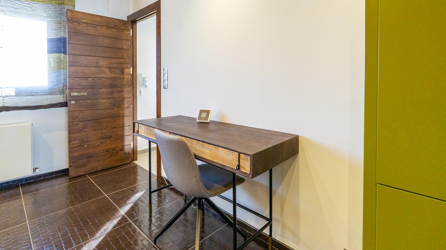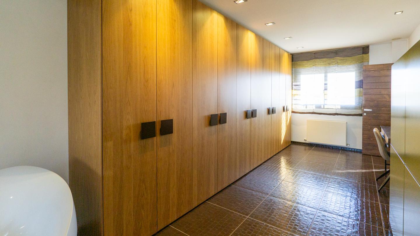 Las escaleras dan acceso a la planta superior, en la que están los 3 dormitorios y 2 cuartos de baño. El dormitorio principal es un espacio fantástico, plagado de elementos ideales para optimizar la calidad de vida. Incluye una bonita bañera de diseño al lado de la cama, lo que te permitirá disfrutar de relajantes baños en cualquier momento del día. Esta habitación tiene un baño en suite, con sanitarios de última generación y acabados de altísima calidad. Los otros 2 dormitorios son dobles, perfectos para descansar en un espacio tranquilo. Actualmente uno de ellos funciona como despacho. El segundo cuarto de baño también está equipado y amueblado con excelentes acabados.