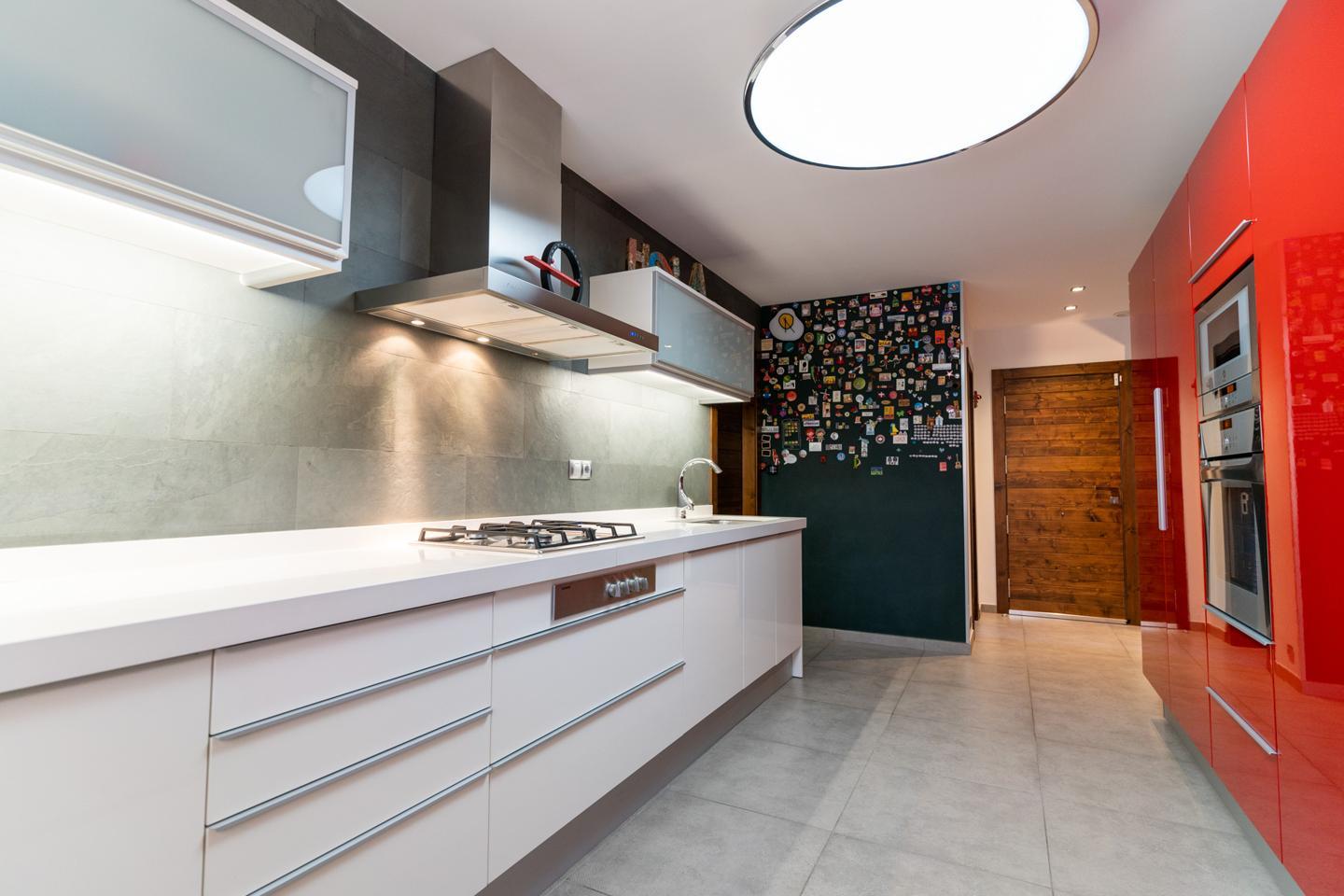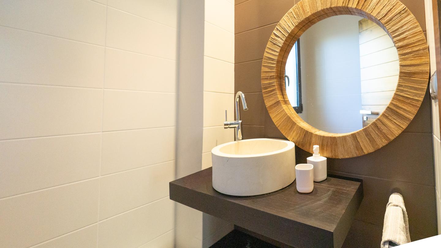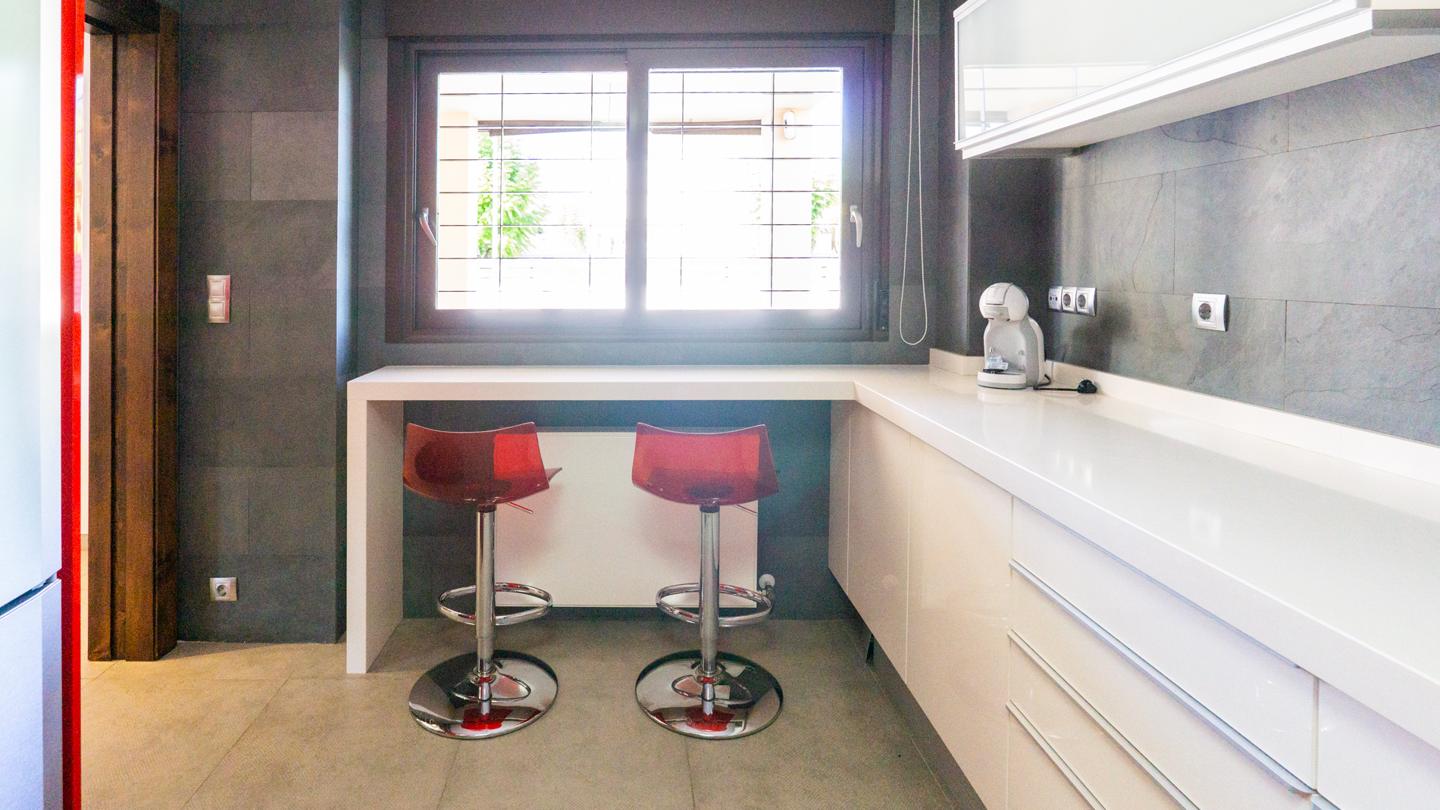 Desde el bonito porche se accede a la planta principal de la casa, donde se encuentra el amplio salón – comedor, la cocina independiente, completamente equipada, y un lavadero de muy buen tamaño. En esta planta también hay un aseo de cortesía, que da servicio a la zona de día. La vivienda, construida en 2006, ha sido completamente reformada en el año 2010, con excelentes calidades y un diseño moderno muy especial.