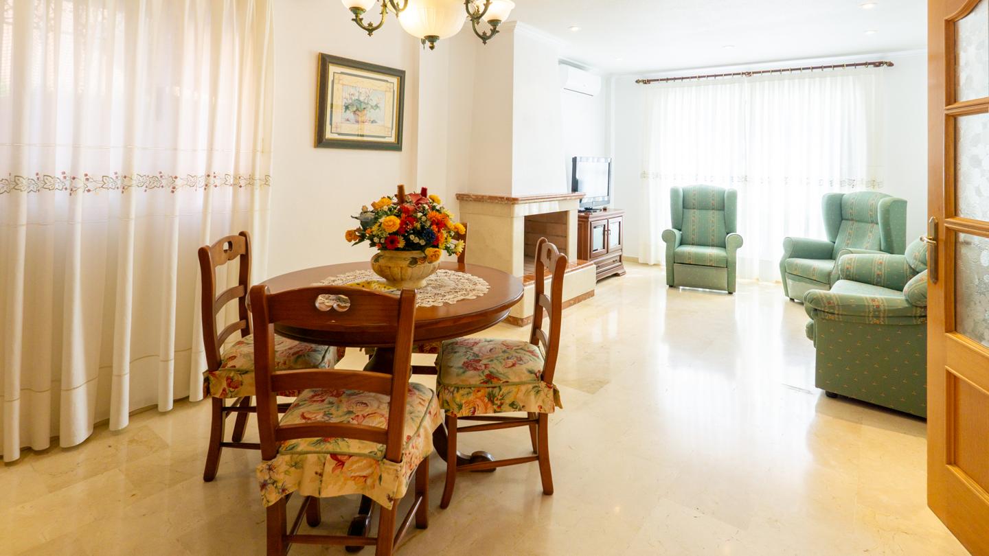 La propiedad cuenta con un luminoso salón equipado con chimenea, perfecto para disfrutar de momentos acogedores en invierno. La cocina, independiente, está completamente amueblada y equipada, con una despensa para el almacenaje y un cuarto para la colada con acceso directo al porche de la vivienda, con su toldos unos de los mejores lugares de la vivienda para disfrutas del buen clima de la zona.