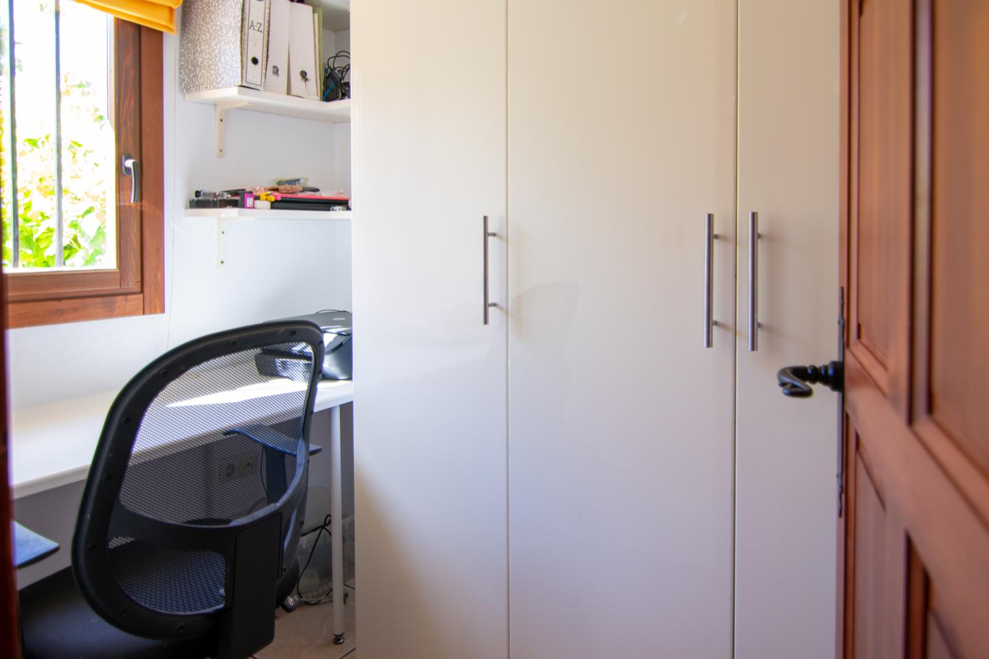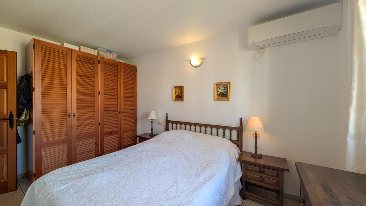 La vivienda se encuentra en un excelente estado de conservación y dispone de todas las comodidades modernas, incluyendo aire acondicionado, calefacción individual mediante bomba de frío y calor, armarios empotrados y un mobiliario completo.