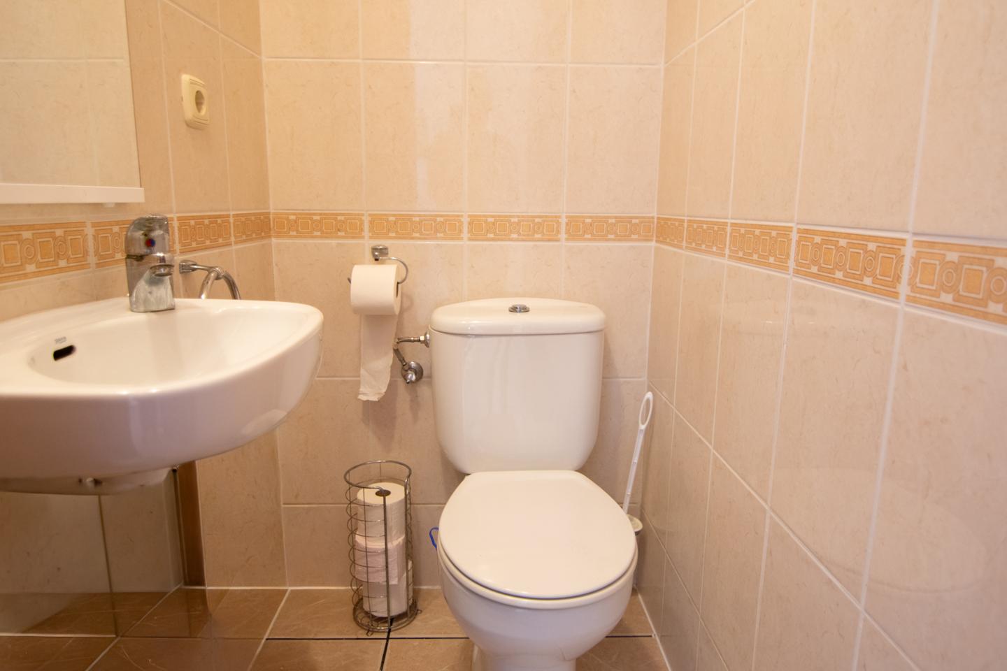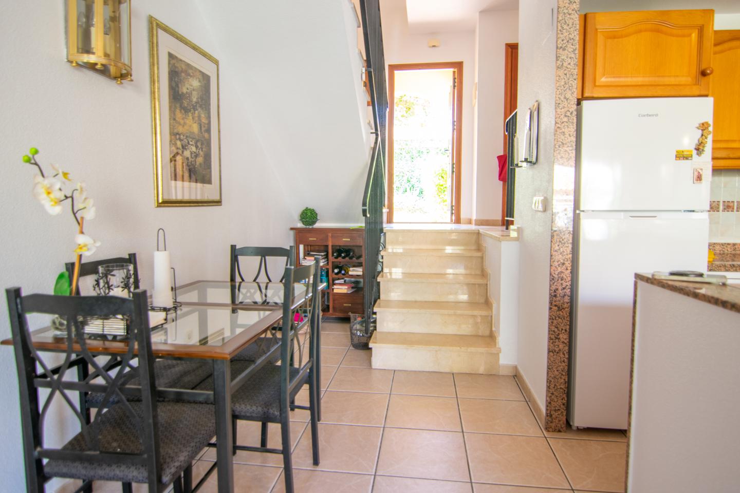 En el exterior, podrás relajarte en el jardín o tomar el sol en el solárium con vistas a mar. La terraza ofrece un espacio ideal para reuniones y cenas al aire libre. La urbanización privada cuenta con una piscina comunitaria y zonas verdes, perfectas para el ocio y el descanso. Además, la propiedad dispone de suelo de gres y una orientación que maximiza las vistas y la luminosidad.