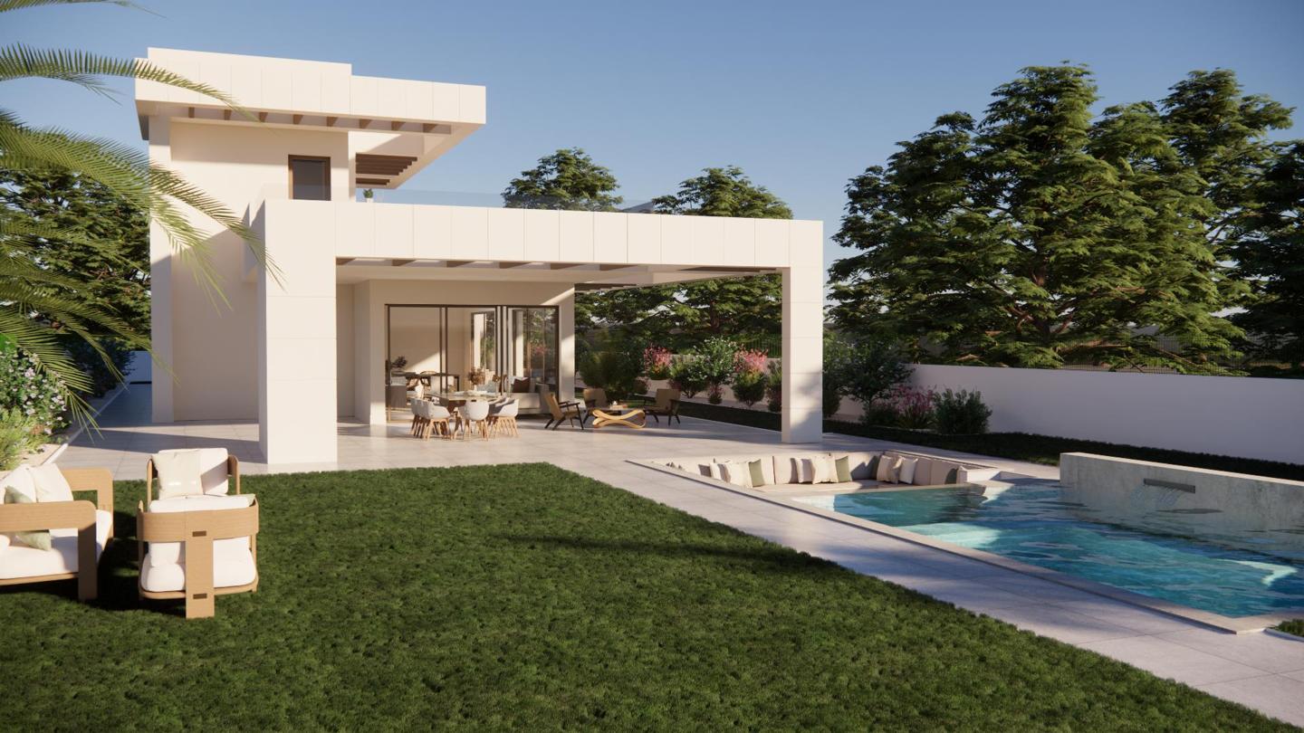 VILLA AURA es una villa en una sola planta, ideal para garantizar la comodidad y la calidad de vida. Es posible personalizarla de principio a fin, desde la elección del tamaño de la parcela hasta el diseño de la vivienda. Esta villa cuenta con una superficie de 170 metros cuadrados e incluye aparcamiento con puerta automática, piscina, solárium y preciosas terrazas exteriores.