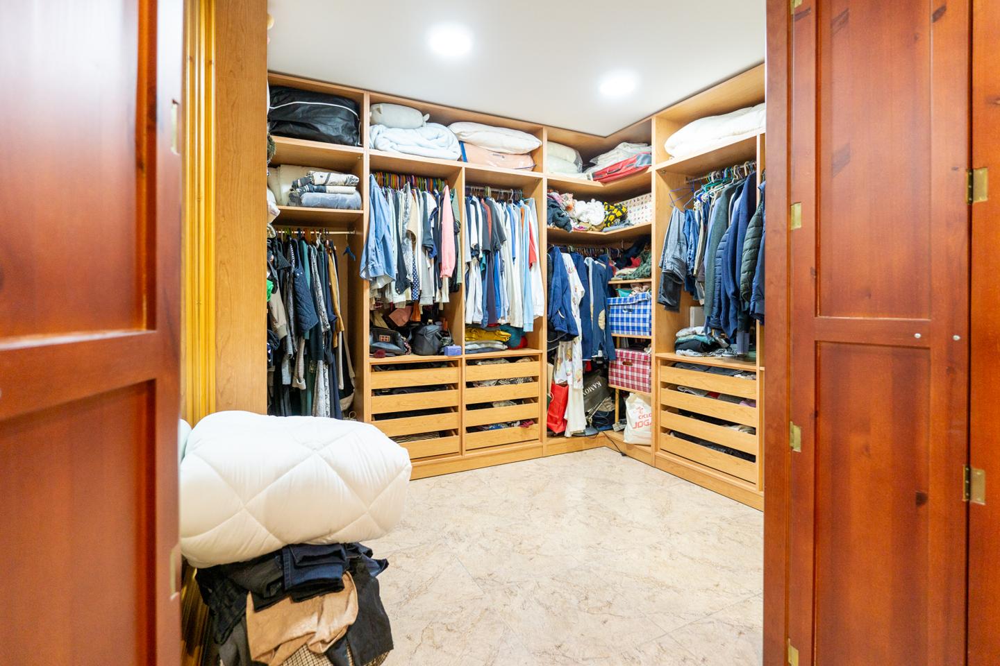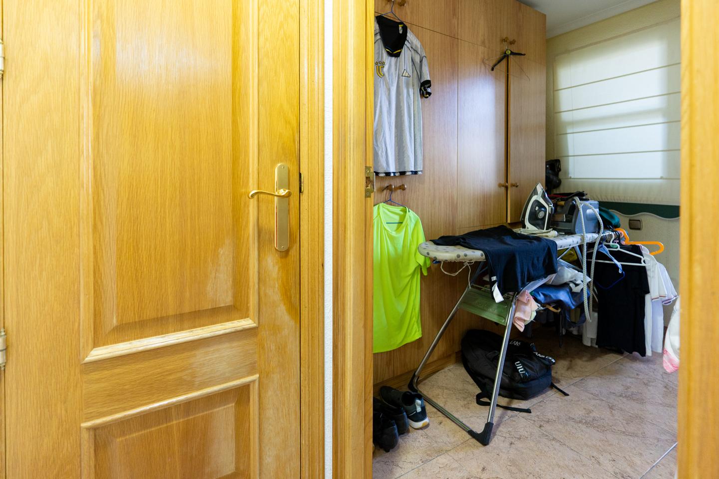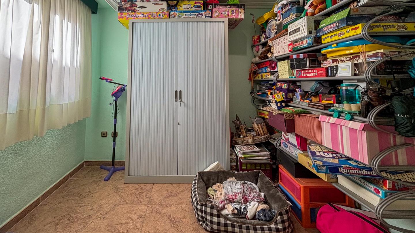 La vivienda, que se encuentra ubicada en la tercera planta de un edificio con ascensor tiene 4 dormitorios grandes, perfectamente equipados. Originalmente eran 2 casas, que se unieron, por lo que la propiedad tiene 2 entradas, cada una en un lado de la casa. El dormitorio principal es inmenso y cuenta con un amplio cuarto de baño con ducha y bañera de hidromasaje independiente, además de un vestidor muy amplio, donde también se encuentra el trastero. Se trata de una suite inmejorable, con mucho espacio para disfrutar de la comodidad de tenerlo todo a mano.