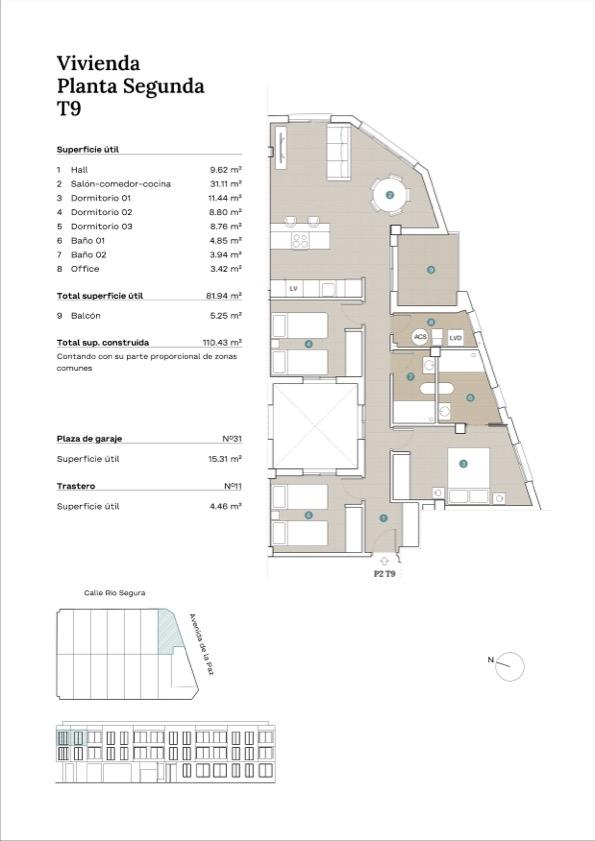 Todos los apartamentos incluyen plaza de aparcamiento y trastero. Los pisos disponen de baños completamente equipados, preinstalación de aire acondicionado.