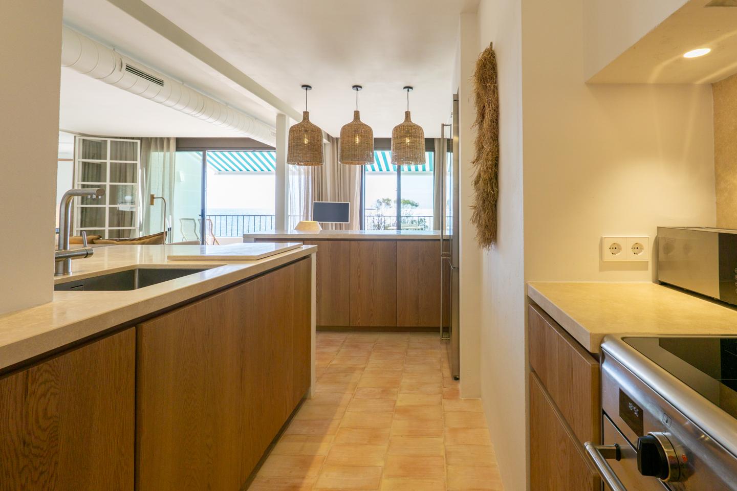 La propiedad cuenta con 110 m² distribuidos en un elegante salón con cocina integrada, 2 amplios dormitorios y 2 cuartos de baño, con aseo de cortesía. La reforma integral ha sido realizada con materiales de la más alta calidad y un exquisito cuidado en cada detalle: