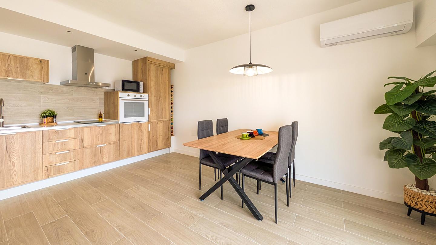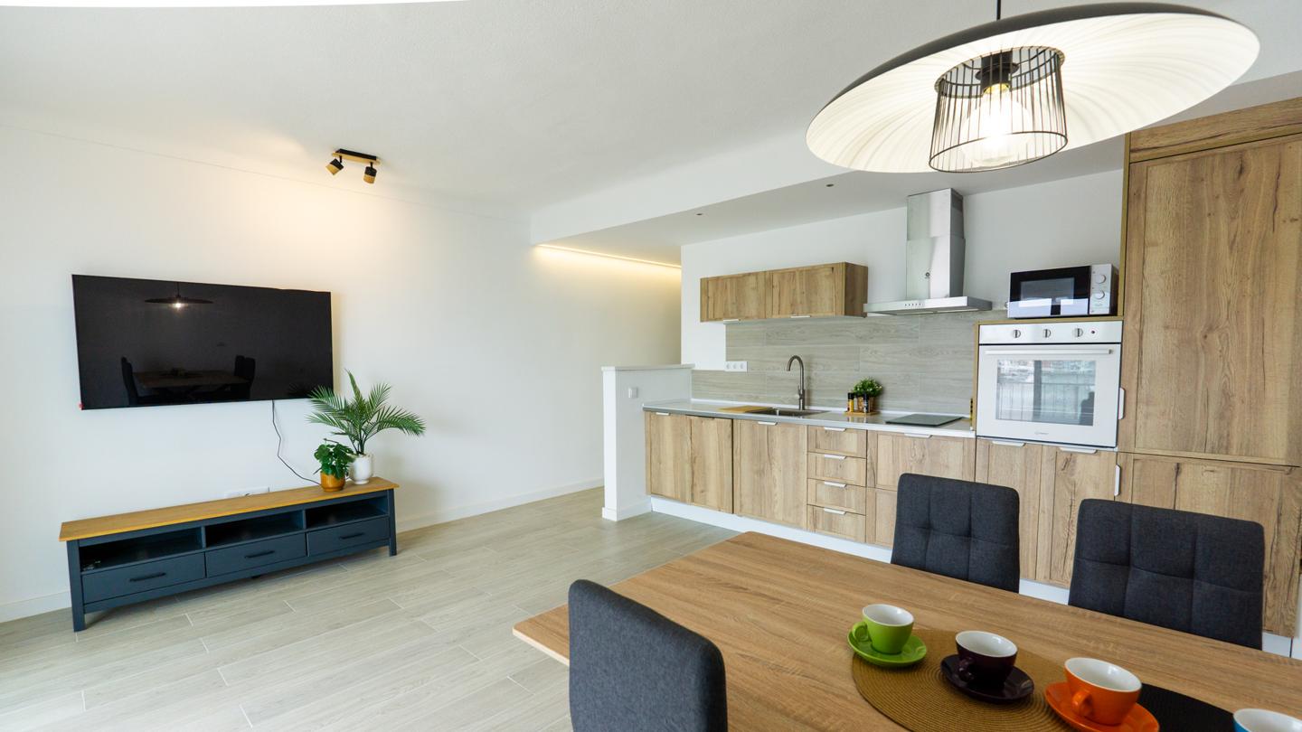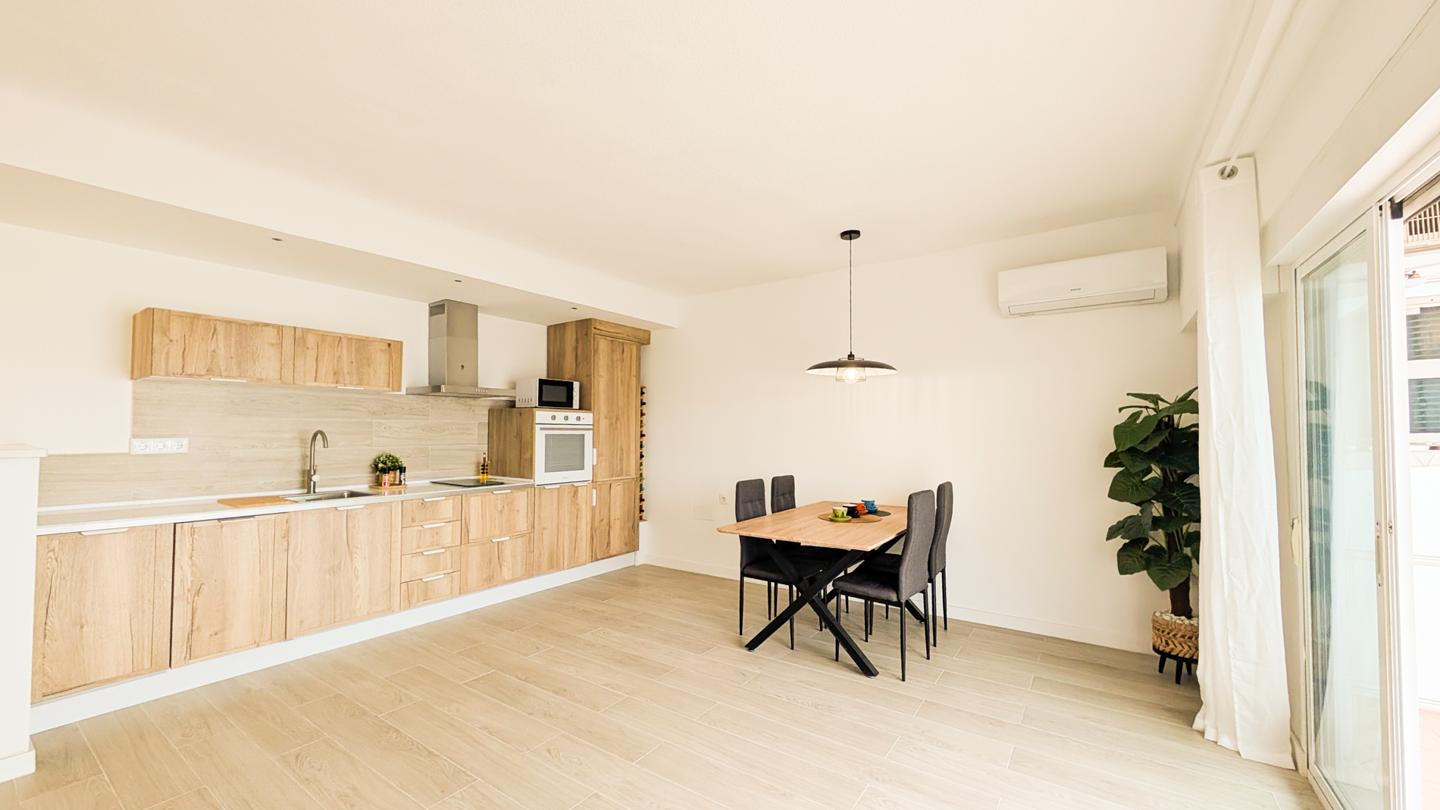 La vivienda reformada con un estilo muy moderno, con salón comedor, integrado perfectamente al la cocina americana, haciendo el mejor espacio de la casa, con una acceso directo a la terraza con vistas al mar, desde la que se pueden admirar las increíbles vistas al mar y a la playa de Gran Playa. Tiene 2 dormitorios de buen tamaño, y un tercer dormitorio que le puedes dar el uso que tu prefieras galería, estudio… y un cuarto de baño completo, con plato de ducha.